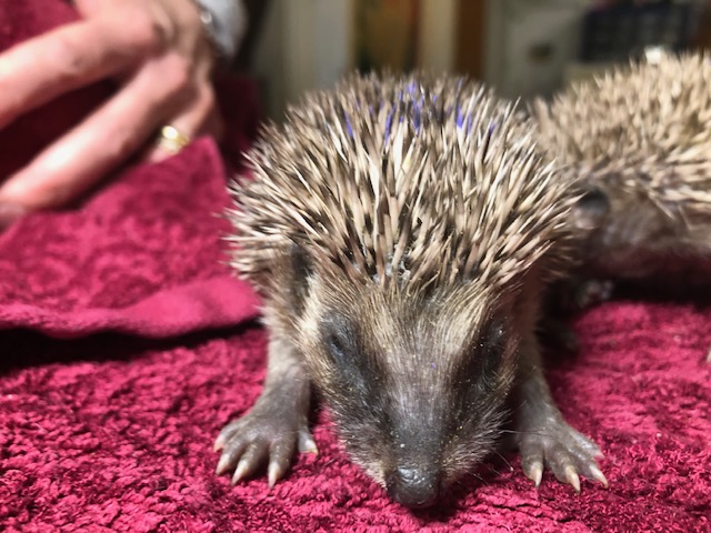 Attaquée par des chiens, la hérissonne est mise dans la propriété voisine. Mais par deux fois elle revient. C’est alors que la dame a pensé qu’il y avait peut être un nid avec des bébés. Et il y en avait. La maman avec ses 3 bébés est alors apportée au centre.