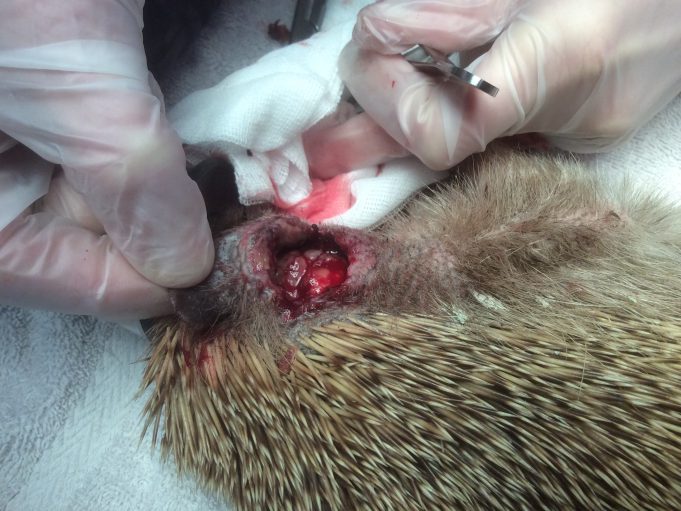 Le 19/04/2017 : Véto: la plaie est nettoyée. C'est un immense trou ou plusieurs côté à côte.