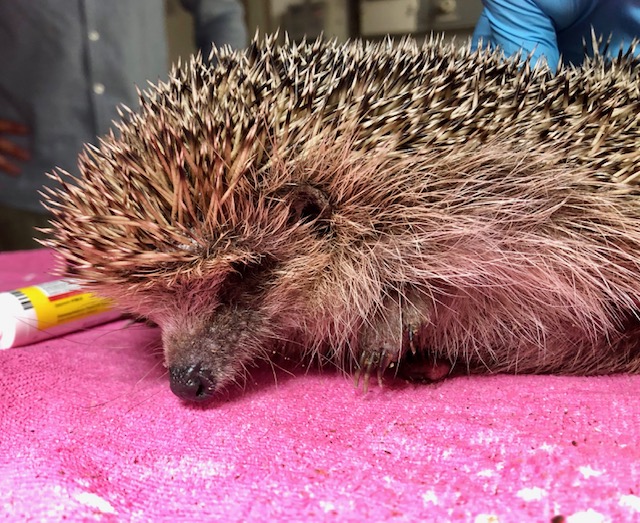 Trouvé la veille en plein jour dans le jardin, il avait déjà des oeufs de mouches sur lui. Otés, il avait l’air d’aller mieux après avoir bien mangé durant la nuit