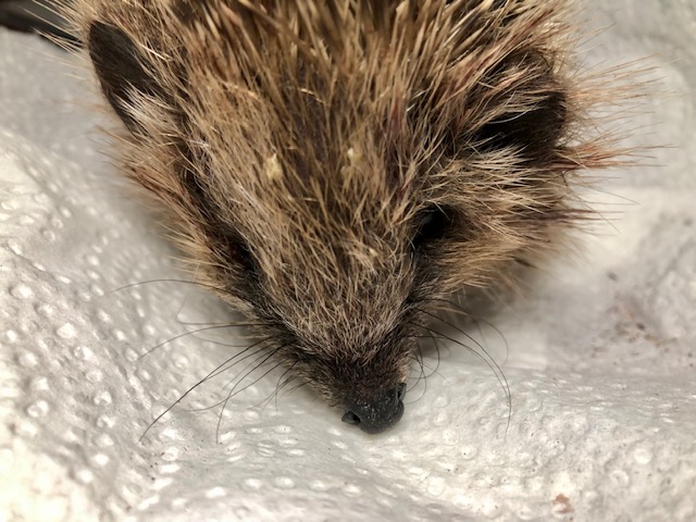 Jeune hérisson trouvé sur l’avenue de Soret en plein jour