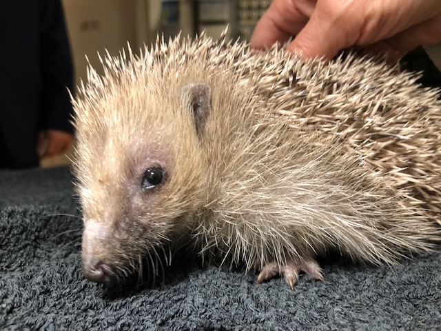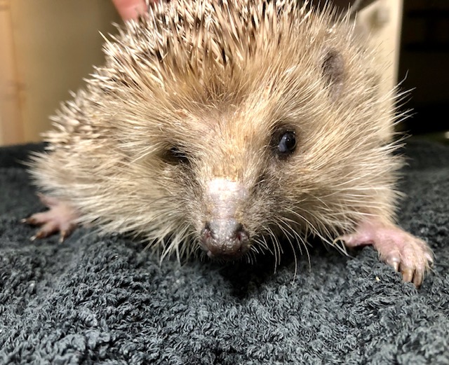 Hérissonne trouvée en plein jour, blessée aux yeux et totalement désorientée. C’est une maman car non loin il y avait un nid avec un bébé. Les deux ont été amenés au centre. A minuit et demi arrivée de 3 autres bébés.