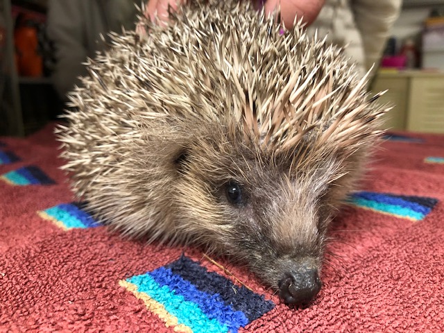 Hérissonne trouvée en plein jour, blessée aux yeux et totalement désorientée. C’est une maman car non loin il y avait un nid avec un bébé. Les deux ont été amenés au centre. à minuit et demi arrivée de 3 autres bébés.