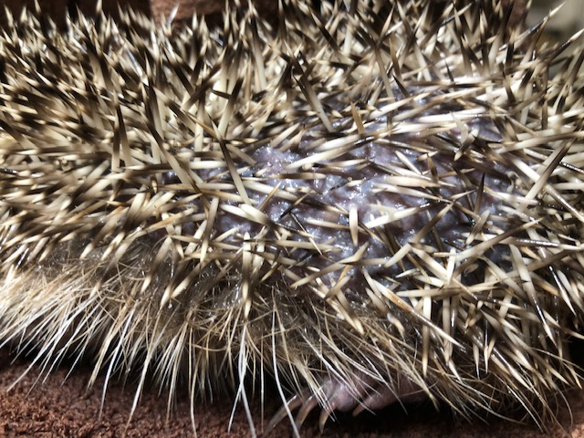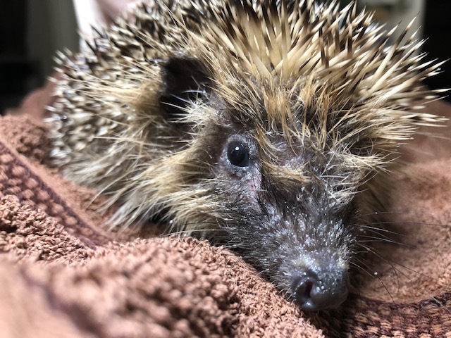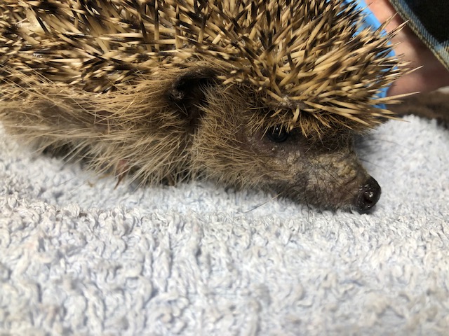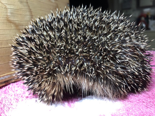 Hérisson trouvé à la mangeoire et quoi semble avoir la teigne comme Châ-teigne qui est peut être sa mère.