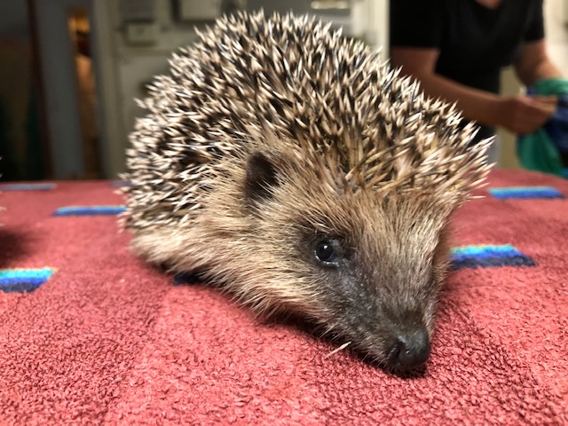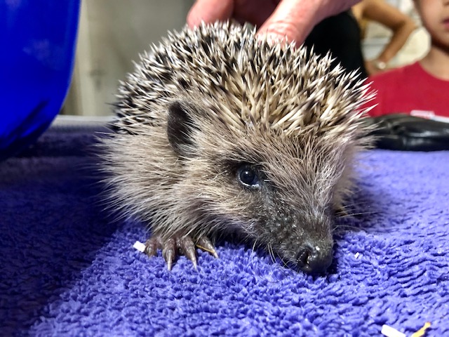 Hérissonne trouvée sur la route totalement désorientée. Prise à la maison et mise sur le balcon, la hérissonne met bas 5 bébés. Toute la famille est apportée au centre juste après.