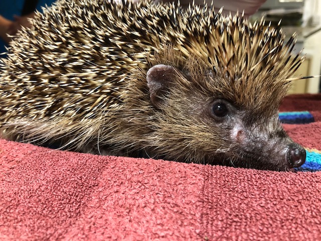 Hérisson trouvé dans le jardin avec la peau bizarre et semblant avoir un problème à la patte