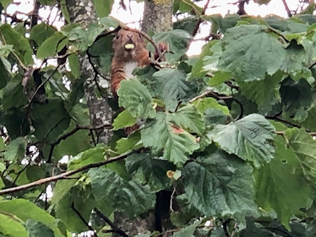Le 04/07/2022 : Je le perd dans les arbres et le retrouve à manger des noisettes à côté de ma terrasse.