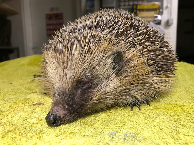 Le 22/05/2020 : A son arrivée au centre, c'est un gros hérisson mais il se tient tout tordu