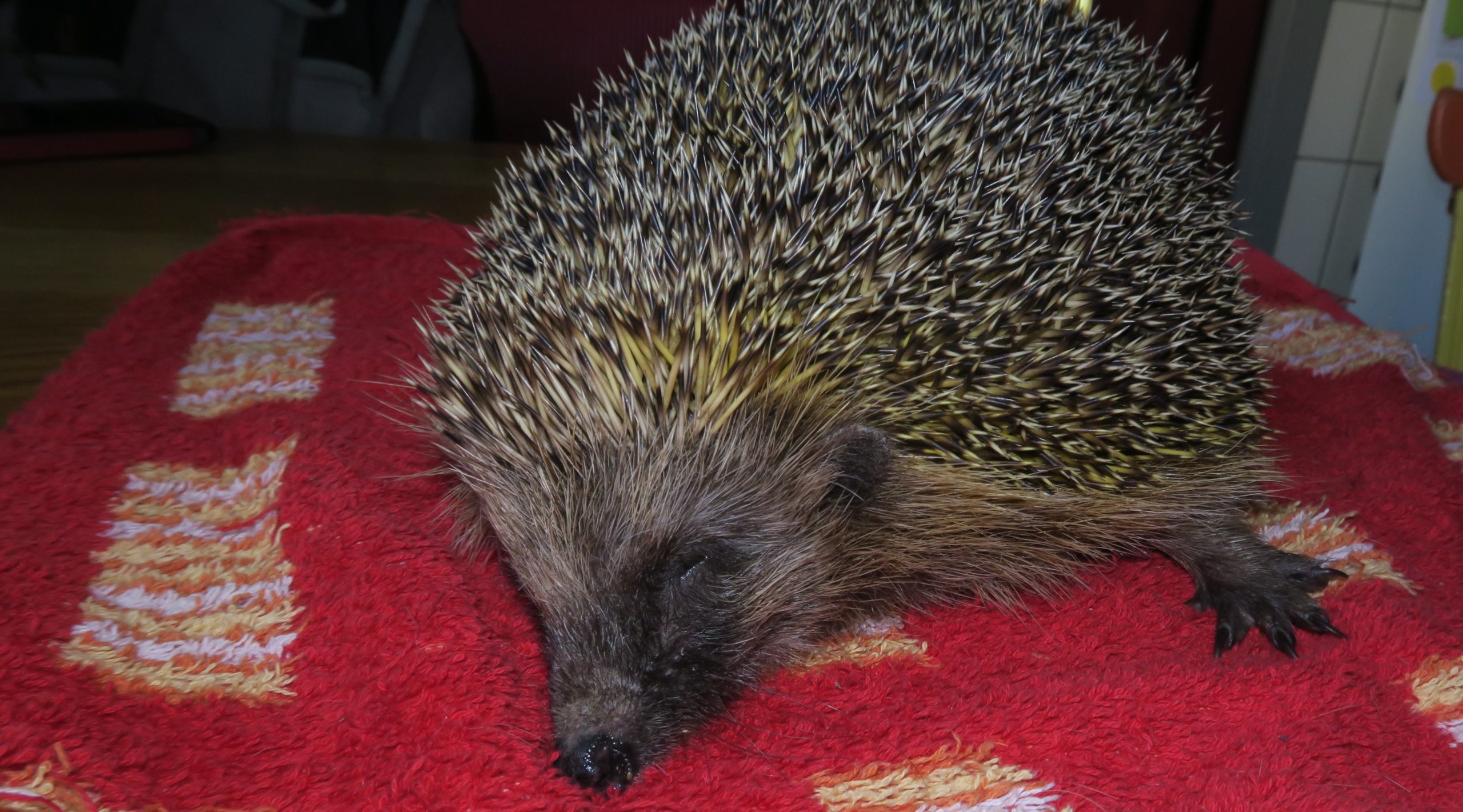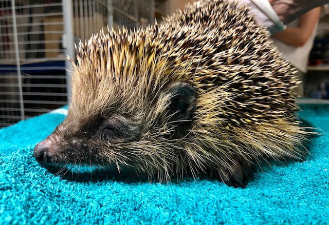 Le 22/05/2020 : A son arrivée au centre, c'est un gros hérisson mais il se tient tout tordu