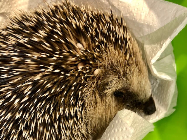 Il est couvert de dizaines de tiques d’autant plus énormes qu’il est encore petit. C’est un ado qui sans doute crevait de faim et qui a perdu de l’énergie à errer en plein jour pour tenter de se réchauffer.