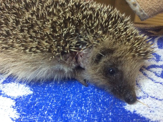 Le 11/03/2017 : Elle est blessée au cou et à la patte avant droite. La patte a une grosse plaie ouverte, on voit les phalanges toutes cassées