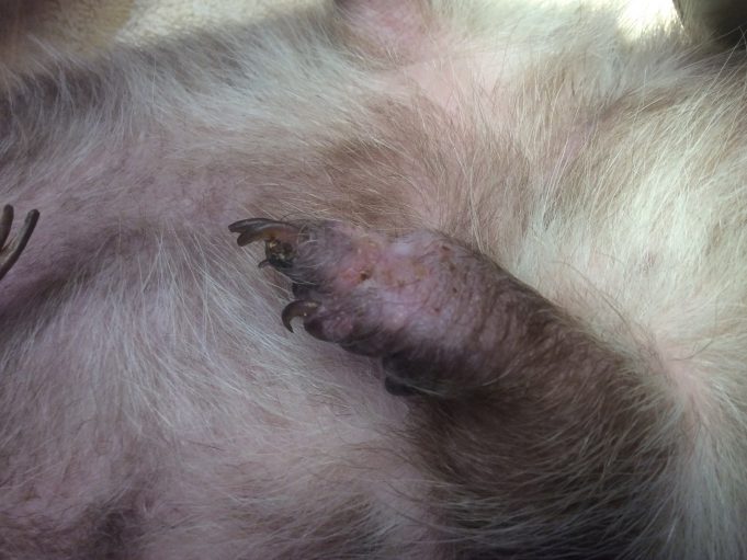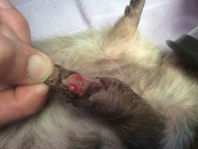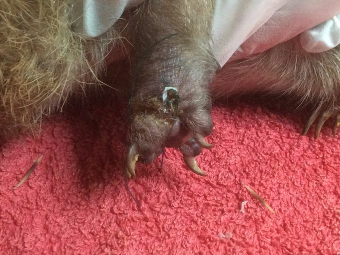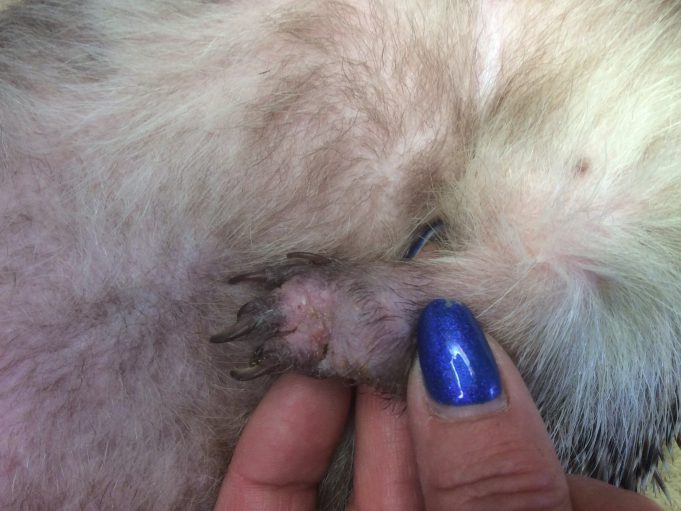Le 22/04/2017 : La patte cicatrise et ne semble pas infectée