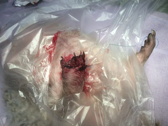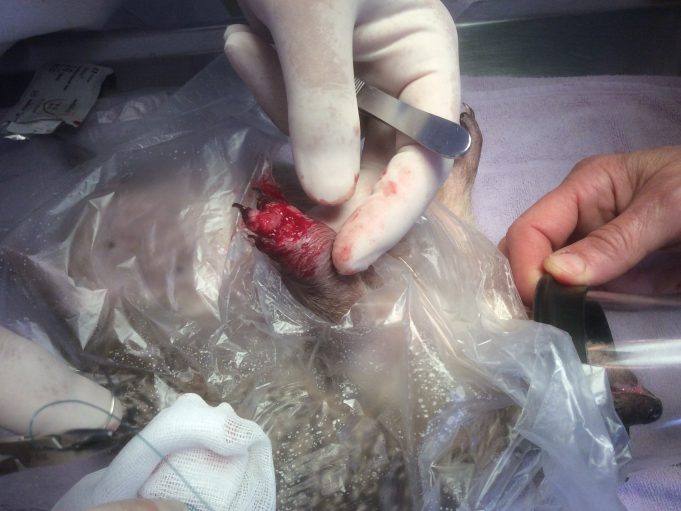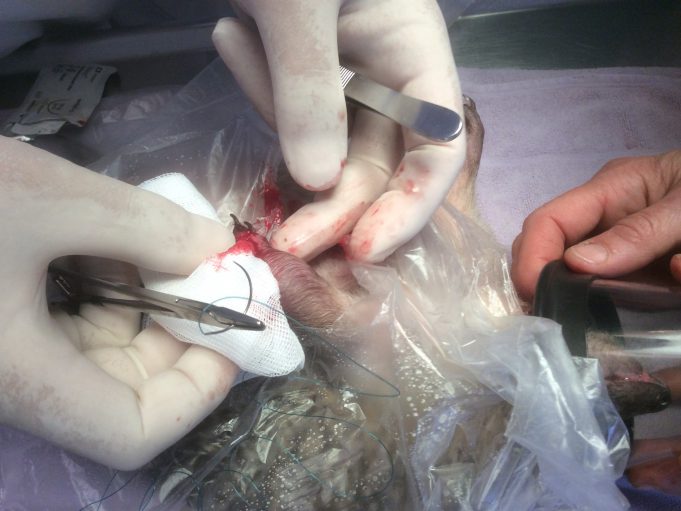 Le 14/03/2017 : Des agrafes sont posées pour tenter de faciliter la cicatrisation