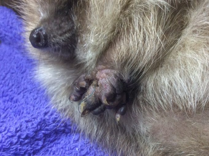 Le 14/03/2017 : La plaie de la patte avant gauche est jolie