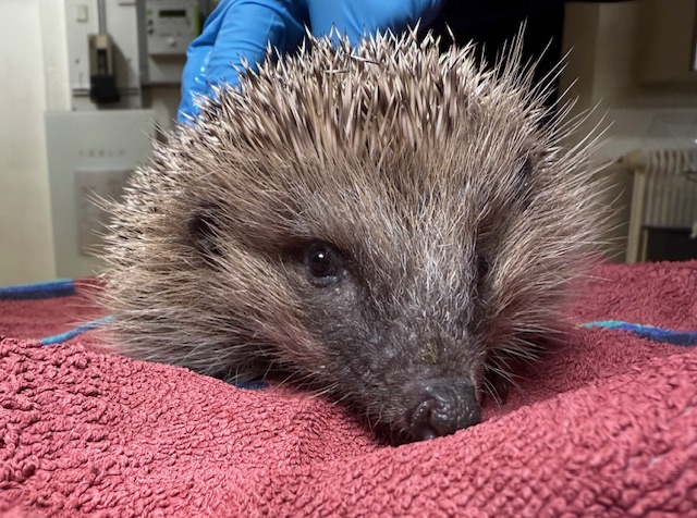 Petit hérisson trouvé errant dans la rue près d’un rond point à Gland