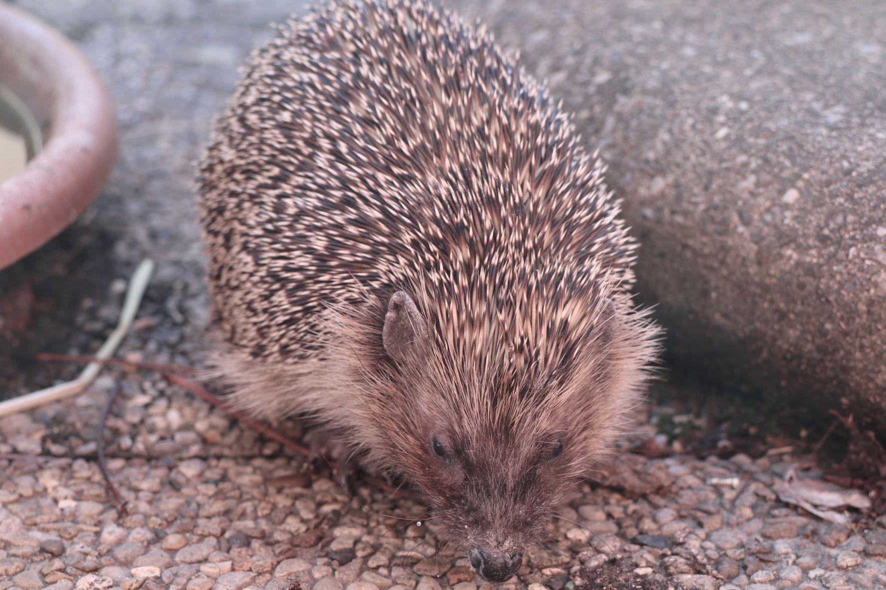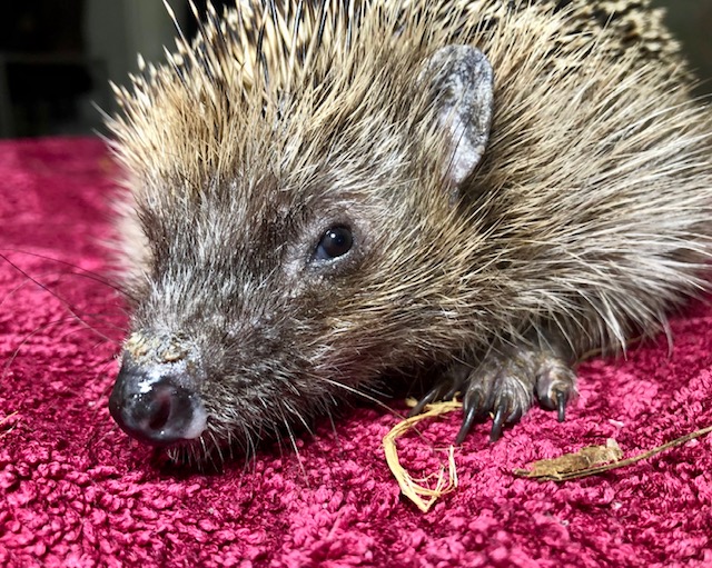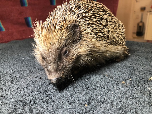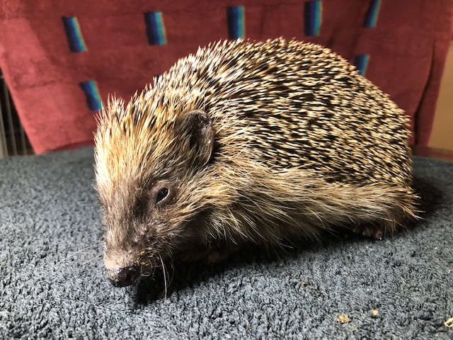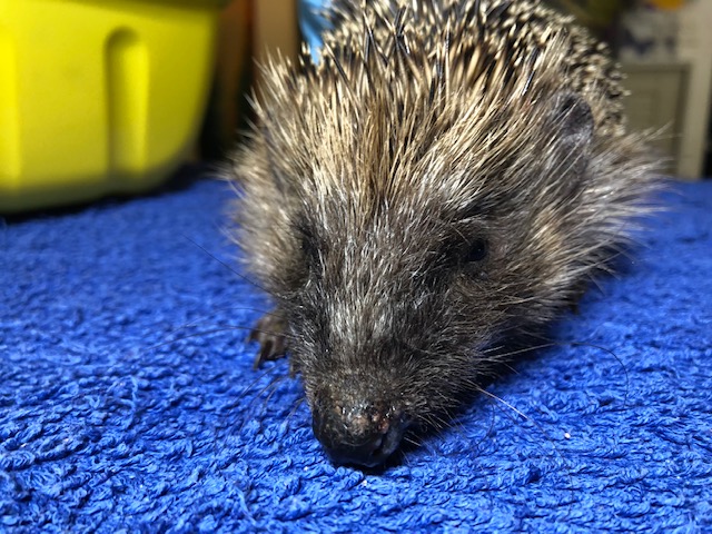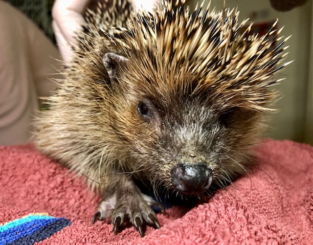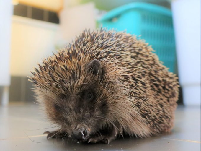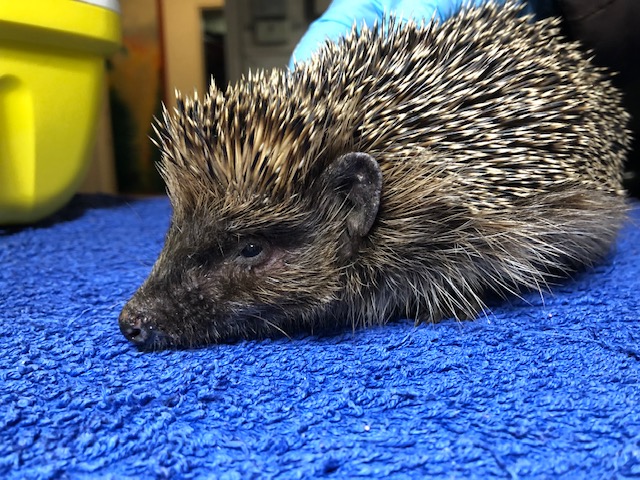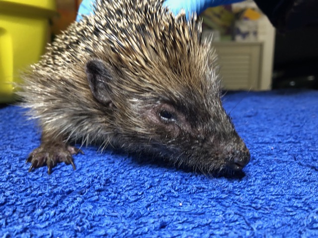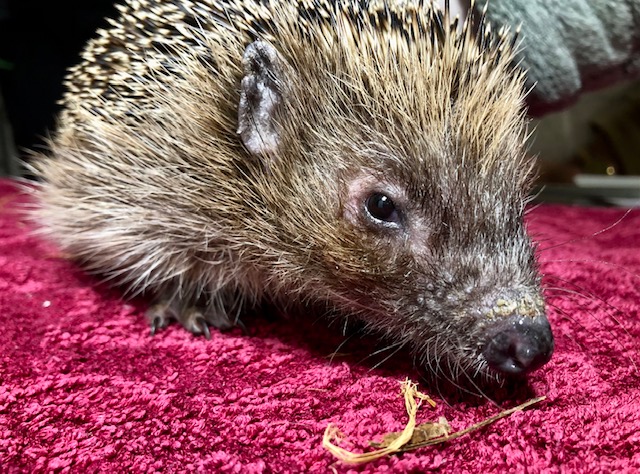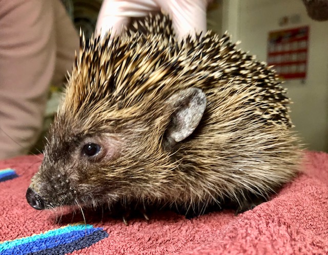 Hérisson trouvé en plein jour près du centre commercial de Chavanne de Bogis. Arrivé au centre SOS hérissons via la clinique des Tuileries