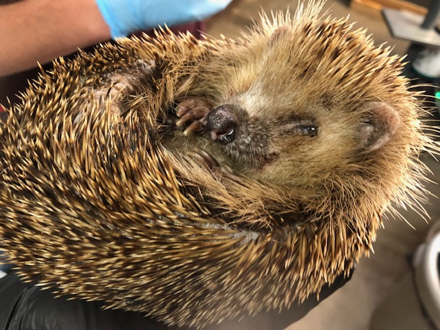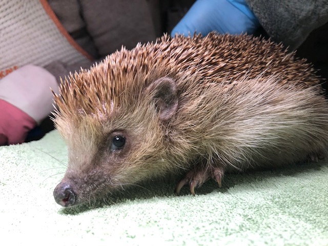 C’est une hérissonne âgée pleine de tiques. Elle n’a mangé que du mou et il y a donc suspicion d’un problème aux dents.