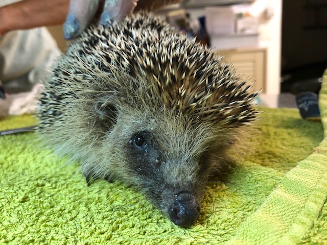 Le 29/06/2019 : A son arrivée, c'est une belle hérissonne mais pleine de tiques