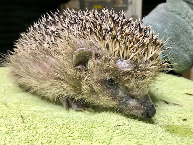 Elle pèse 620g, un poids insuffisant pour passer l’hiver. Elle a la teigne et des tiques. Elle reste au centre pour être soignée mais dans une cage différente de ses frères Funky et Groovy