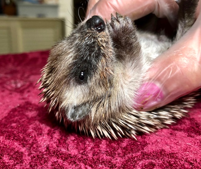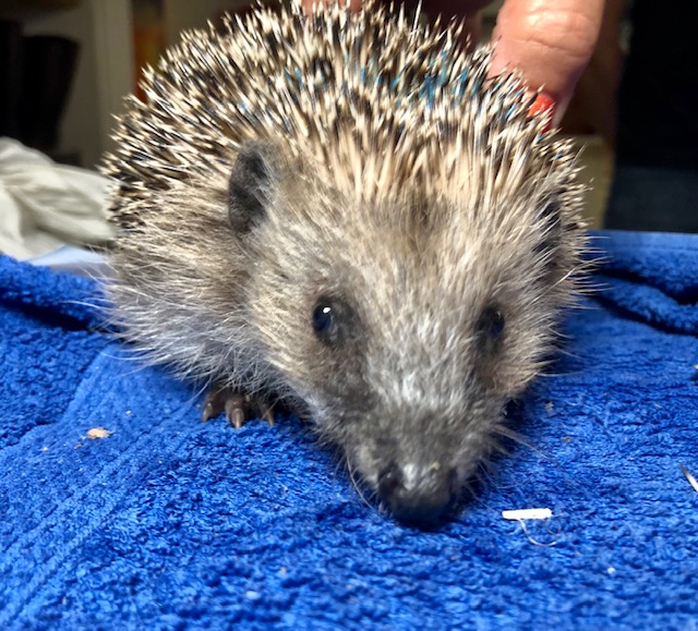 Deux petits hérissons trouvés errants au milieu de la route, malheureusement l’autre était déjà mort. Brigitte a été le chercher à la clinique des Tuileries pour la garder en pension chez elle jusqu’à qu’il puisse rejoindre le centre (qui est complet)