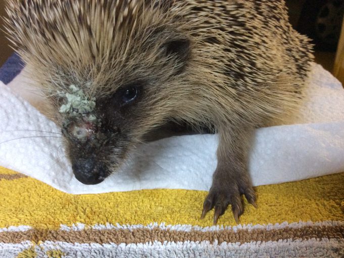 Le 25/07/2016 : Il a une grosse et profonde blessure sur le museau qui l'empêche de respirer correctement