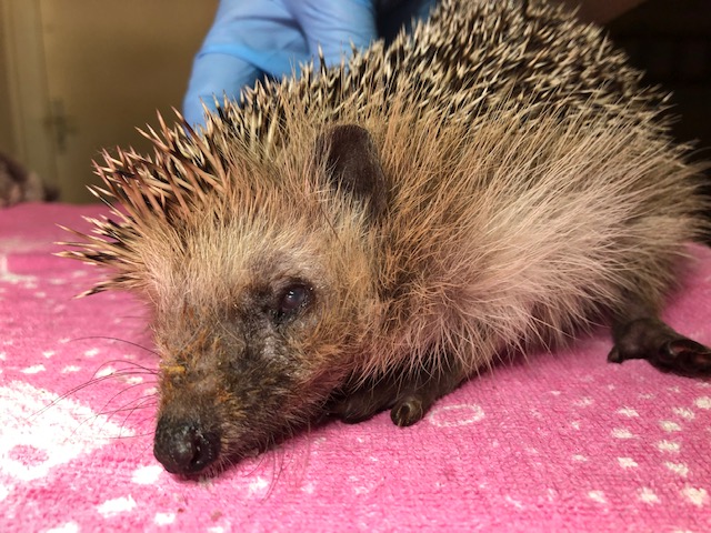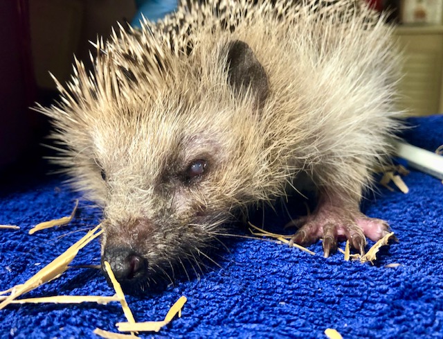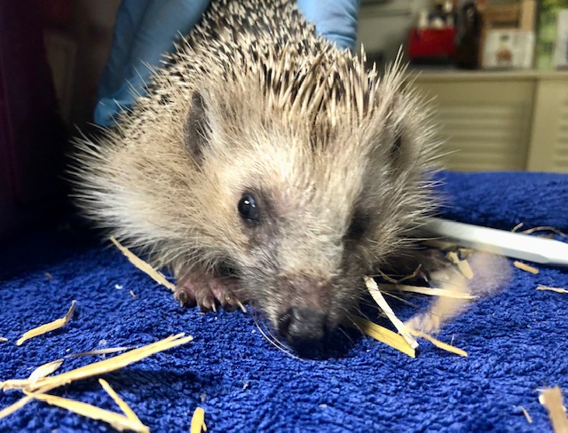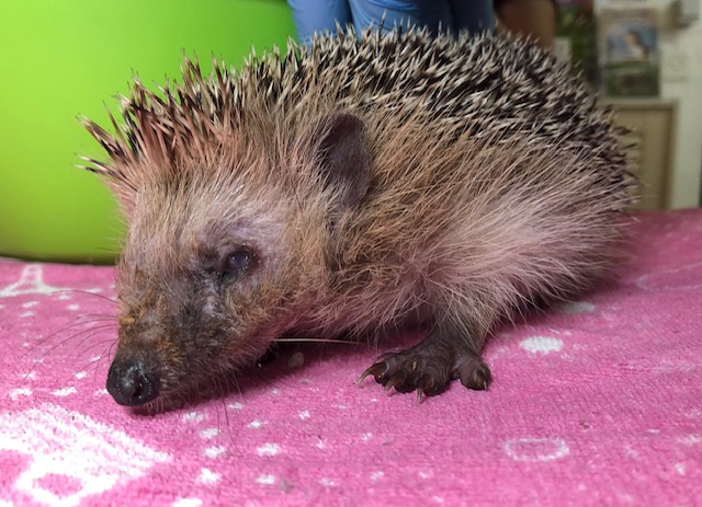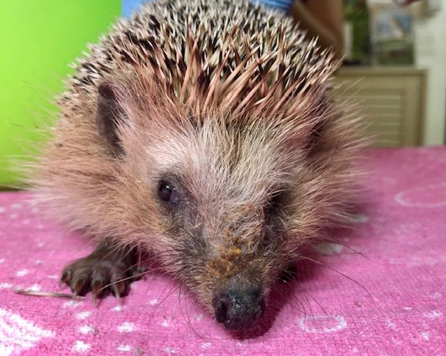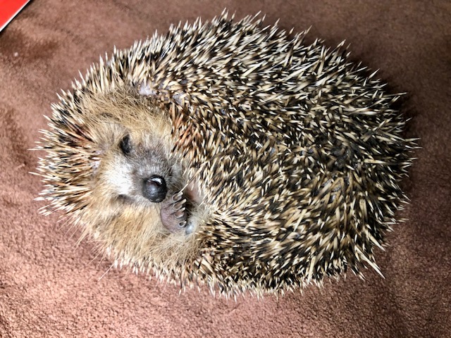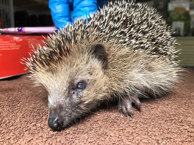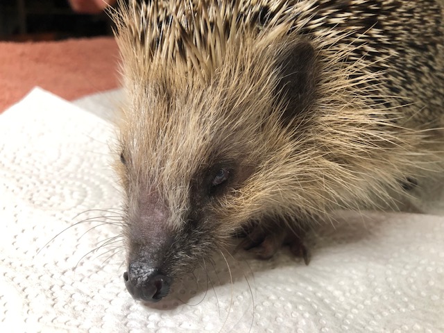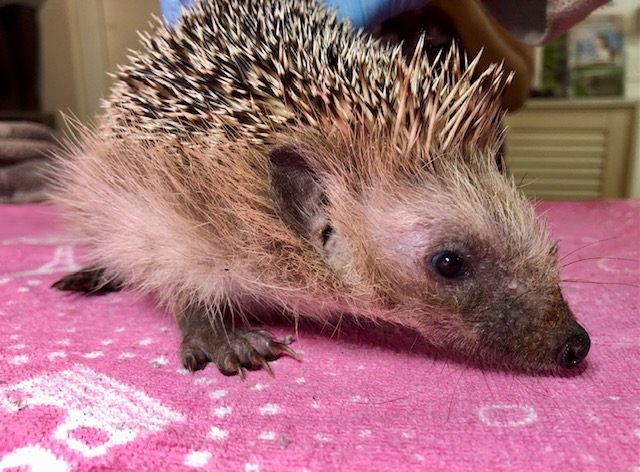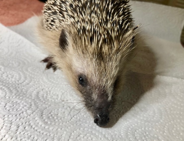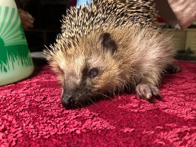Hérisson trouvé errant en plein jour en plein Thônex. Recueilli la veille et apporté par Michèle au centre.