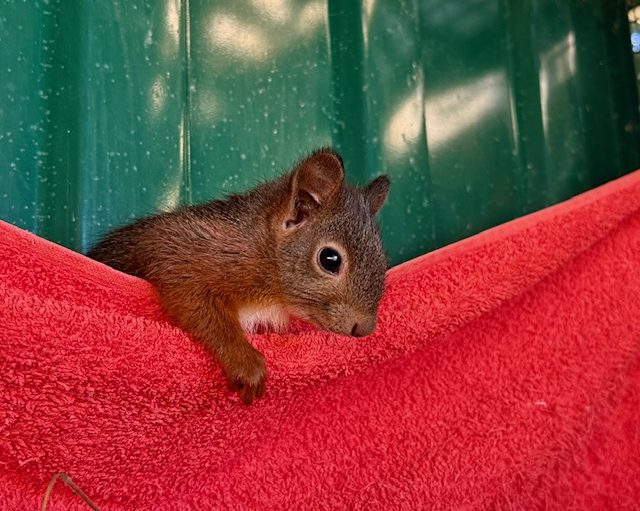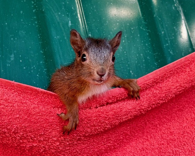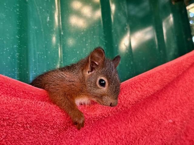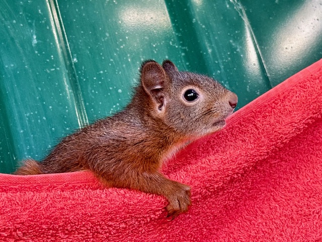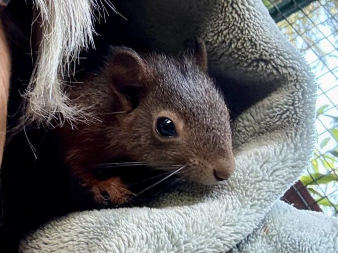 Jeune écureuil d’environ 5 semaines tombé du nid. Arrivé au centre via le Bioparc