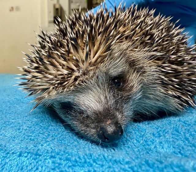 Jeune hérisson trouvé au rond point à l’entrée de Divonne, semble incapable de remonter vers le trottoir,