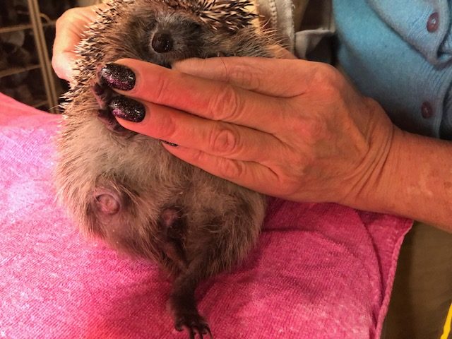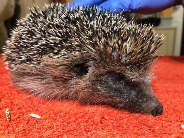 Le 10/12/2020 : A son arrivée, la petite hérissonne est blessée