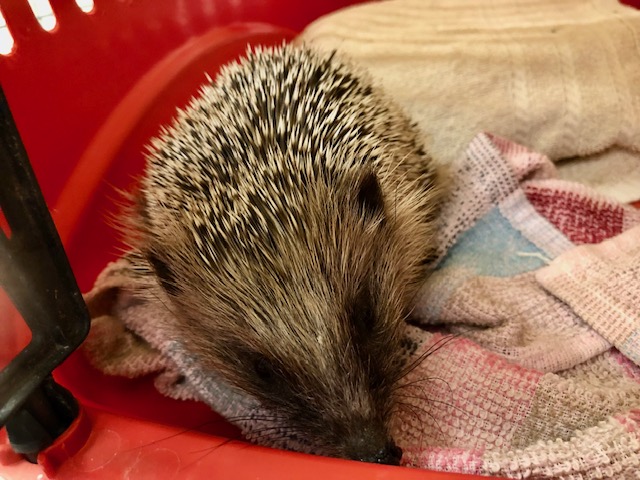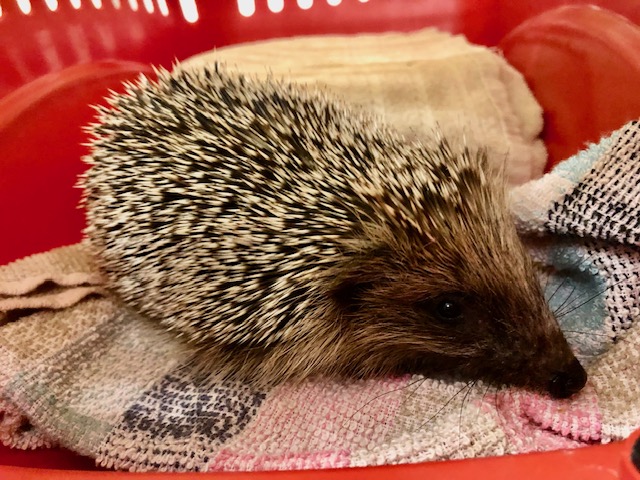 Hérisson trouvé errant depuis plusieurs jours dans le jardin. Arrivé au centre via le Bioparc