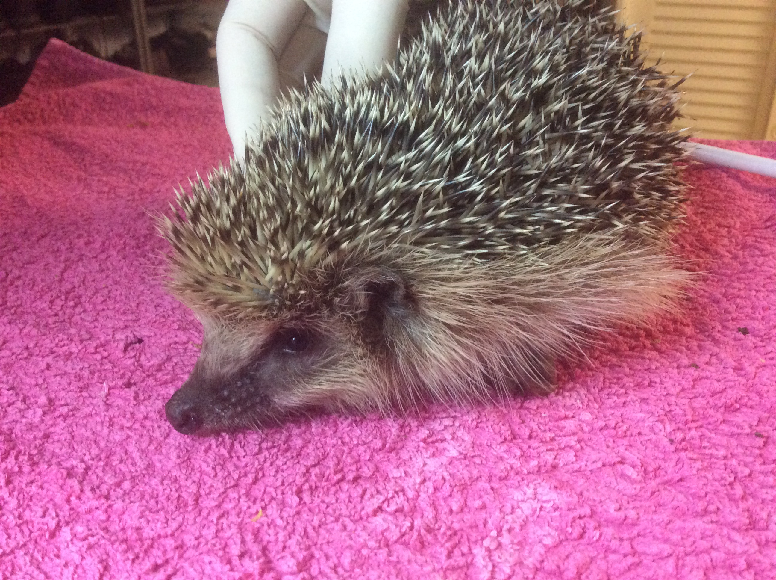 Le 20/10/2017 : Trouvée tard le soir dans le jardincette hérissonne est gravement blessée et laplaie très infectée