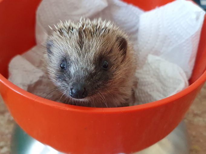Tout jeune hérisson trouvé sur la piste cyclable longeant la zone industrielle de ZIMEYSA