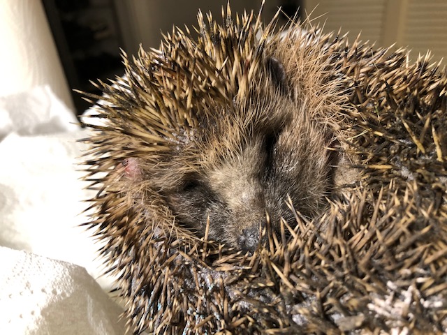 Le checkup avec le véto a confirmé ce que je soupçonnais. La pauvre hérissonne avait un oedème au niveau de la trachée. Un poche d’air et de sang s’était formée. Il y avait donc bien obstruction de l’oesophage qui l’empêchait de déglutir. C’est sans doute le choc très violent qu’elle a subi qui a provoqué cette blessure mortelle. Il était impossible donc de la nourrir, donc de la soigne. Nous ne l’avons pas réveillée de sa narcose, la laissant partir au paradis des hérissons. Quel dommage, elle a été fauchée par la mort alors qu’elle était en pleine santé.