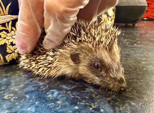 Icara et Guitounet ont encore eu un bébé cette année. Elle a été trouvée en plein jour et amenée au centre SOS hérissons car elle semble ne pas avoir été nourrie par sa mère.