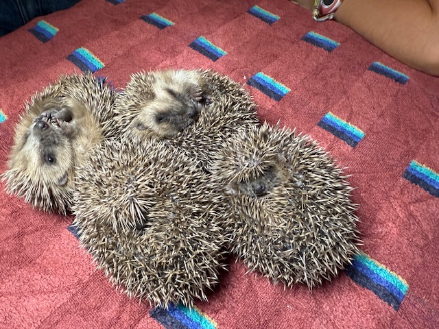 Le 17/08/2025 : 2 jours après, les bébés sont pesés. Ils ont déjà bien grossi et commencent à avoir des petits piquants noirs