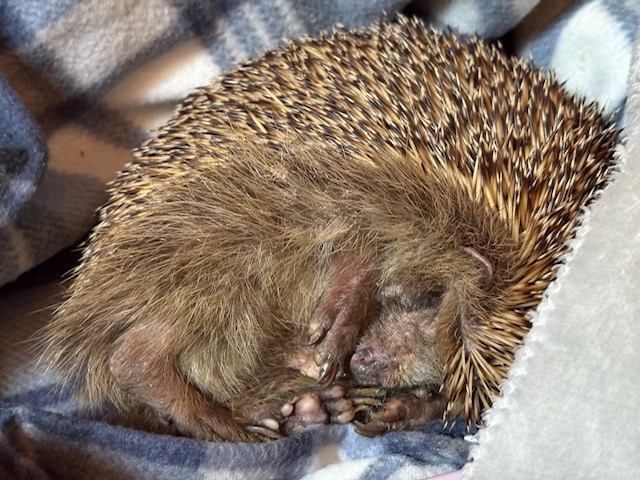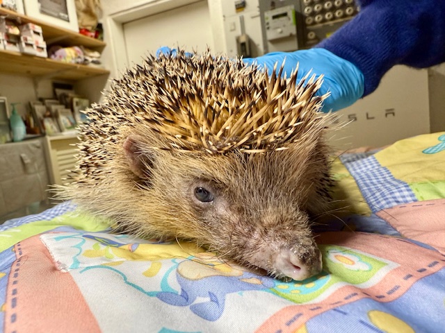 Hérisson trouvé sur un parking en plein jour et respirant très mal.