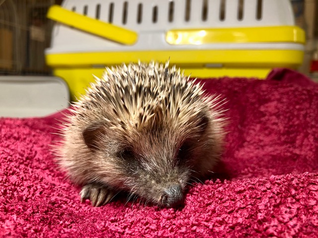 Hérisson trouvé en plein jour dans la cour de l’association Anima. Arrivé au centre via le Bioparc Genève.