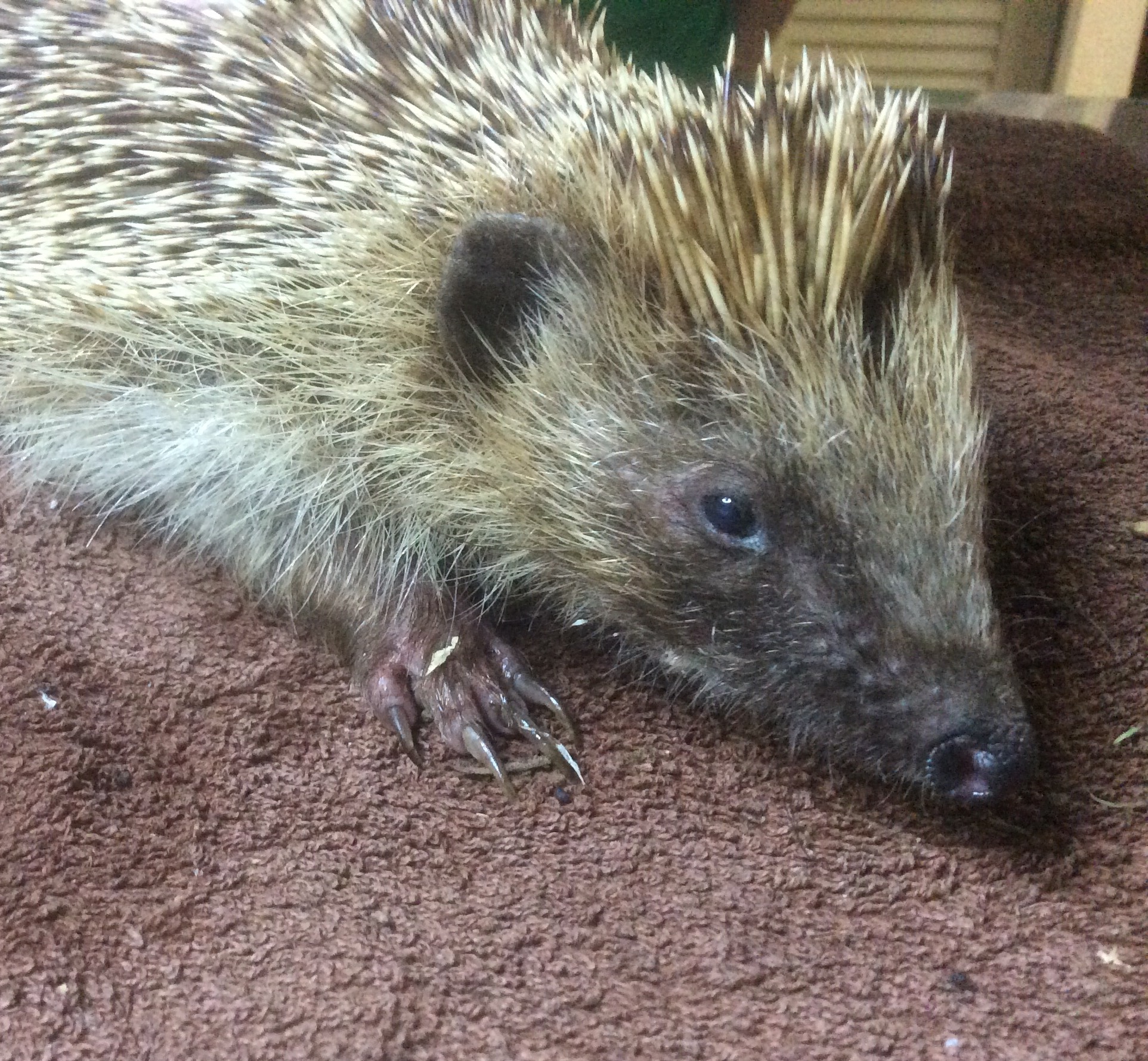Très amaigrie et affaiblie, inflammation de l’anus et des gencives. Difficulté à s’alimenter. C’est une hérissonne très âgée.