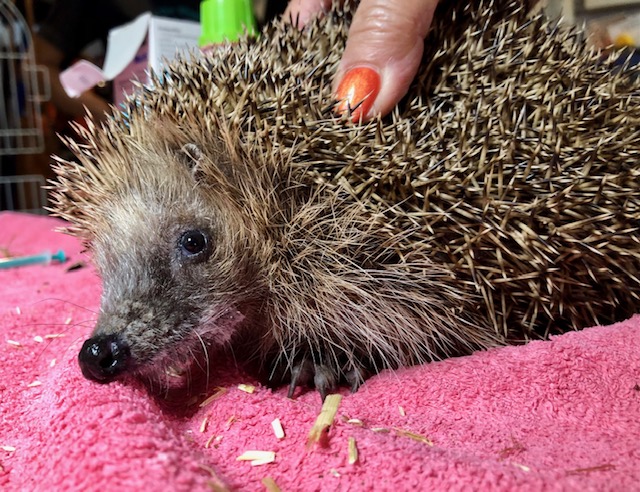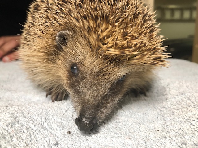 La hérissonne est peut être prête à mettre bas et n’a pas trouvé de lieu adéquat. Elle est gardée quelques jours pour s’assurer que tout va bien.