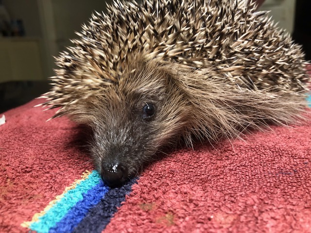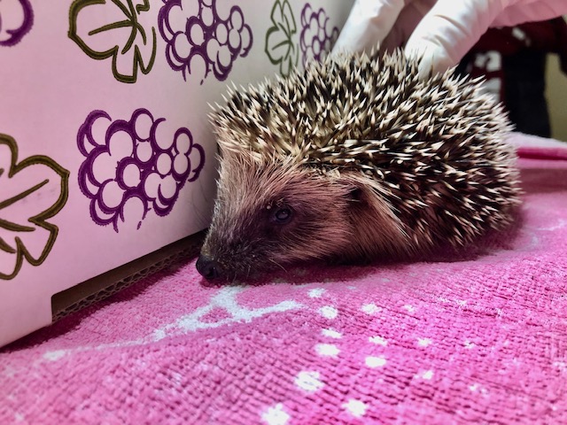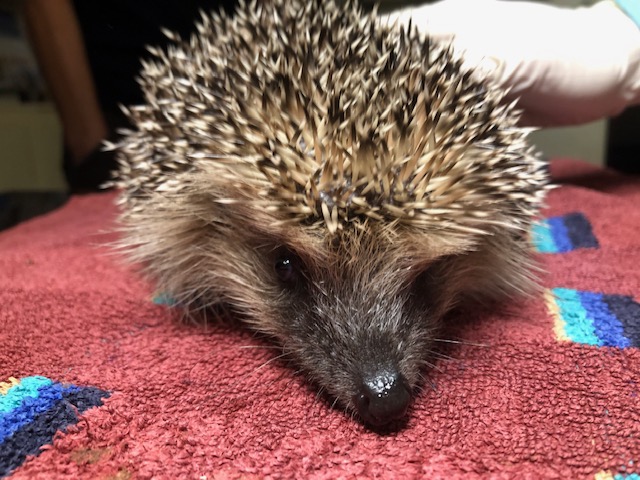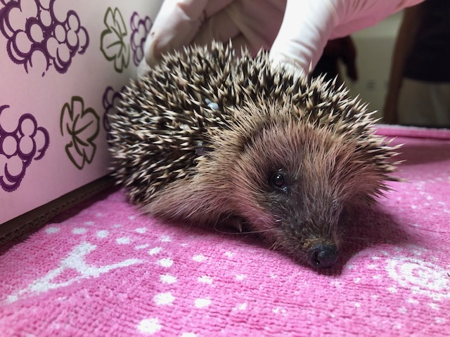 La petite hérissonne est pleine de tiques et puces mais sinon semble OK
