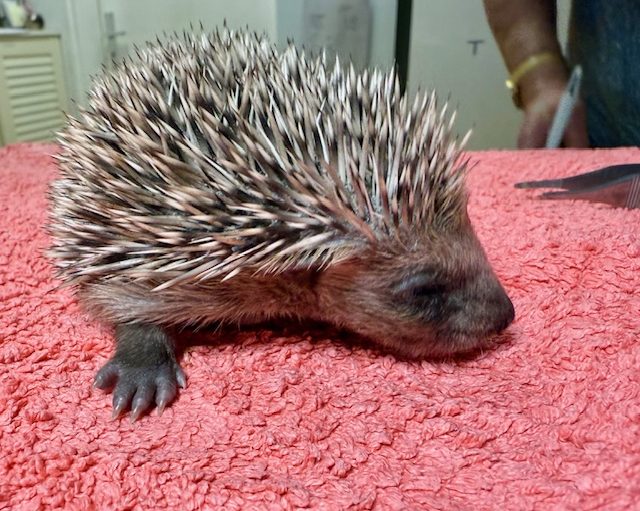Le 16/10/2025 : Les bébés hérissons ont tous entre 120 et 130g. Ils tètent encore leur maman. Les yeux sont à peine entrouverts