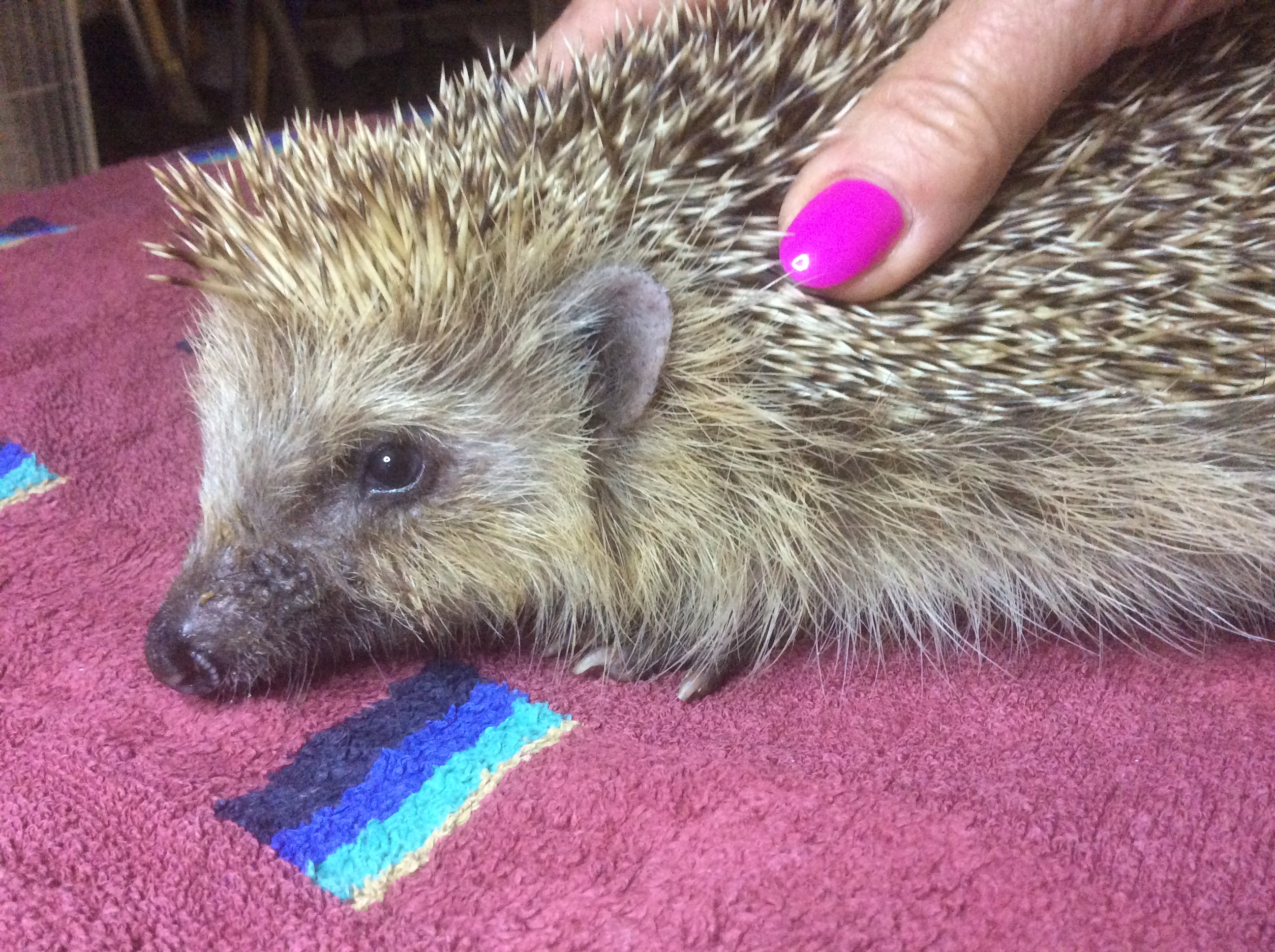 Hérisson trouvé en campagne. Blessé. Amené à Collonge Bellerive chez le vétérinaire Betina Aberle-Thiemann. A été soigné (oreille saignait).