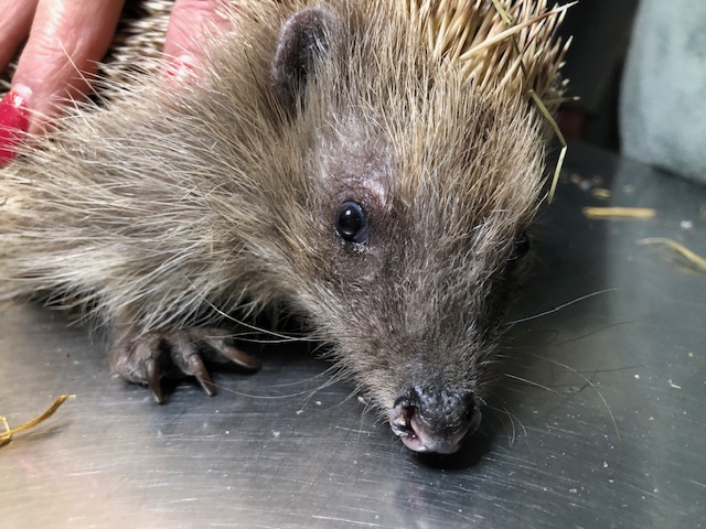Elle est pleine de puces et acariens. La patte postérieure est cassée et l’os sort. Il faudra l’opérer.