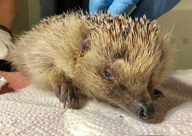 Hérisson trouvé dans le jardin. Il a une oreille coupée. C’est peut être Fred, libéré en 2022.