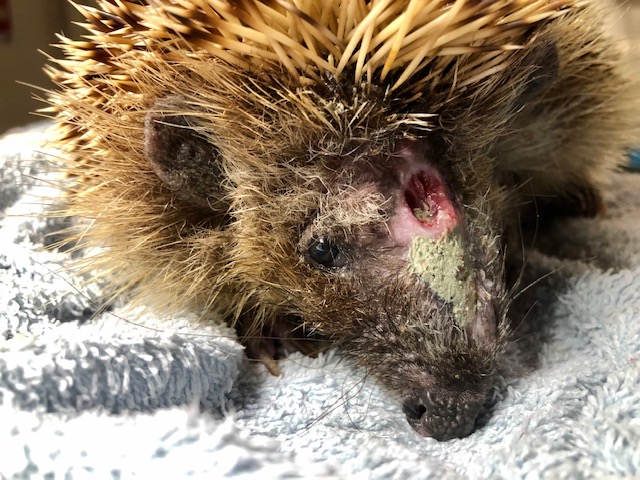Le 24/06/2019 : La peau du bas du museau s'est reconstituée. Reste toujours ce trou qui n'est pas fermé vers le front. Mais sinon tout va bien