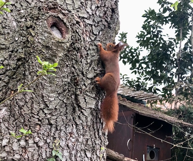Enfin la liberté. Le 11 avril la porte vers l’extérieur a été ouverte. Nuts est parti explorer le cèdre en étant très prudent. Se déplace n’était au début pas simple. Et une corneille a failli l’attaquer. Il est tout de suite retourné dans son nid. Le lendemain, il se déplaçait avec plus d’agilité et est revenu dormir l’après-midi et toute la nuit dans son nid. Il sera toujours là pour lui et on espère qu’il saura toujours le retrouver en cas de danger.