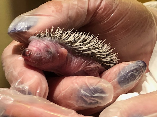 4 bébés hérissons trouvés au jardin Robinson de Balexert. La mère avait fait son nid sous une cabane ou les enfants jouent. Dérangée, elle a abandonné ses 4 petits.