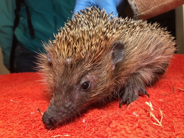 Le 17/04/2021 : A son arrivée au centre. C'est une belle hérissonne mais déjà bien âgée.