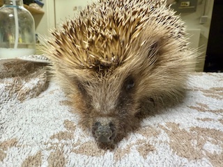 Hérisson trouvé en plein jour dans la zone sportive de Vessy alors qu’il se faisait attaquer par les corneilles.