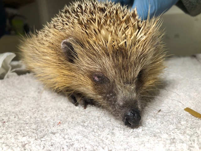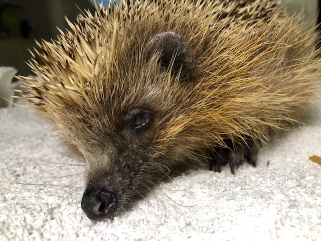 Hérisson trouvé en 2019 au chemin de l’Esplanade la veille, il n’avait jamais retrouvé toute sa tête et avait été placé en parc la même année. Il revient en 2021 car il ne mange plus.