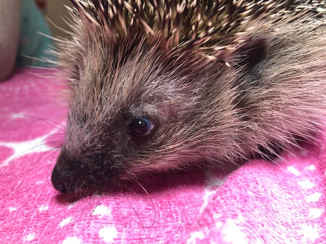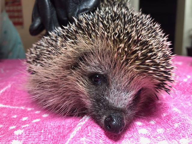 Hérisson recueilli tout petit par Corinne, bénévole au centre.